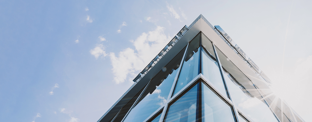 A sleek, multi-level workspace with glass façades and flexible interiors for modern business.